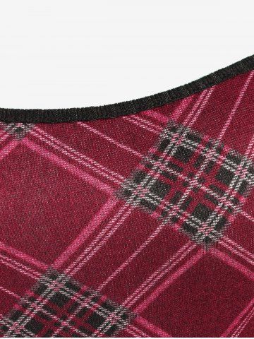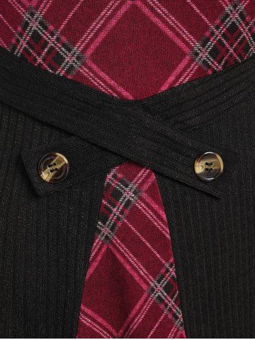 Plus Size Plaid Ribbed Colorblock Long Sleeves Knitted A Line Dress - Red - 5x | Us 30-32
