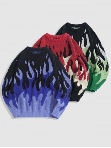 Sweaters & Cardigans > Y2K Aesthetic Flame Graphic Casual Sweater