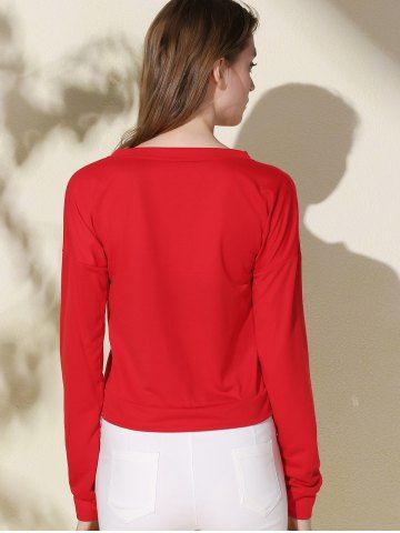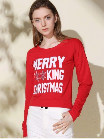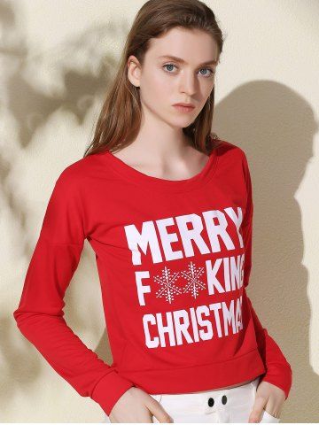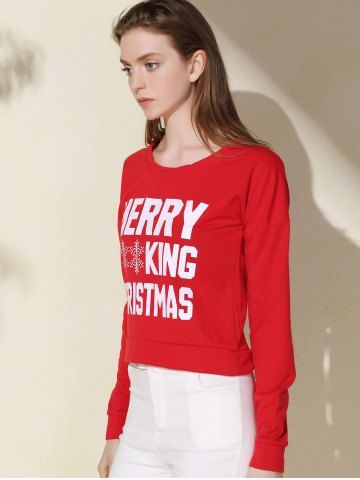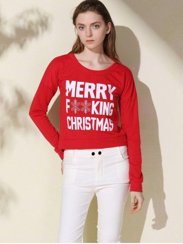 Stylish Scoop Neck Long Sleeve Snowflake and Letter Pattern Women's Christmas Sweatshirt - Red - Xl