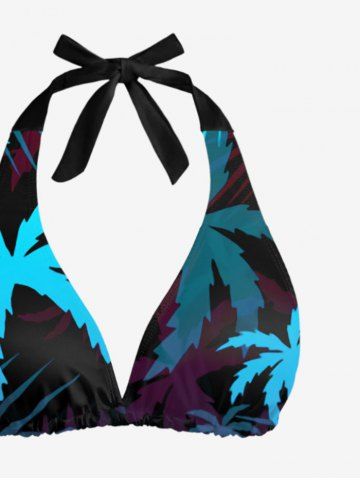 Coconut Tree Print Cinched Tie Halter Hawaii Bikini Set - Black - Xl
