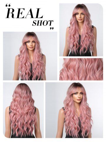 Synthetic Wigs > Black Ombre Pink Long Middle Part Bangs Fluffy Wavy Synthetic Wig