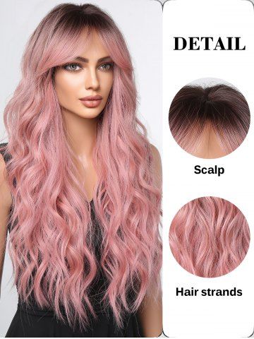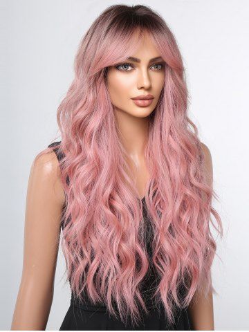 Black Ombre Pink Long Middle Part Bangs Fluffy Wavy Synthetic Wig - Multi-a - 26inch