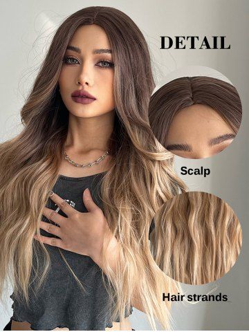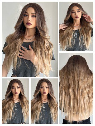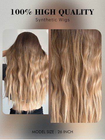 Brown Gradient Golden Long Wavy Synthetic Wig - Multi-a - 26inch