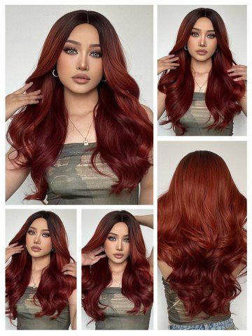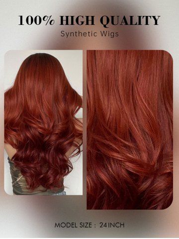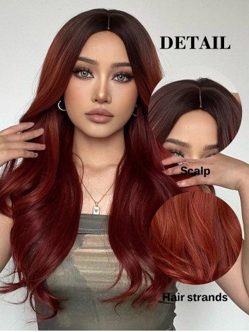 Brown Gradient Red Long Wavy Synthetic Wig - Red Wine - 24inch