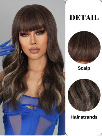 Synthetic Wigs > Brown Highlight Golden See-through Bangs Long Wavy Synthetic Wig