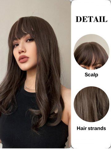 Brown Long See-through Bangs Synthetic Wavy Wig - Black Eel - 20inch