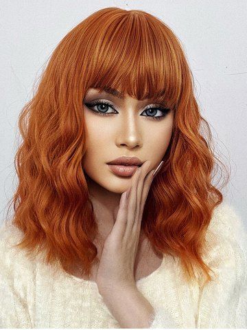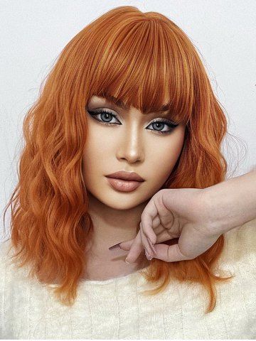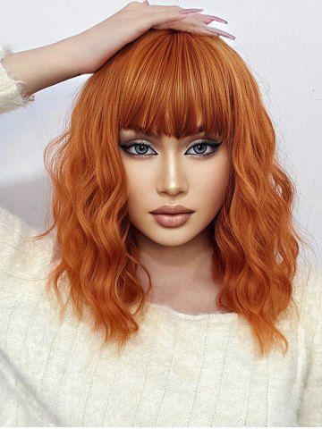 Full Bang Shoulder-length Wavy Synthetic Wig - Papaya Orange - 14inch
