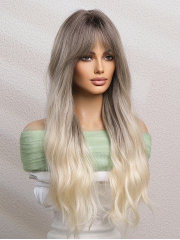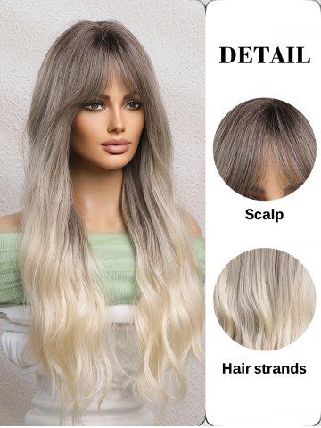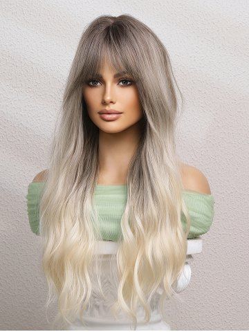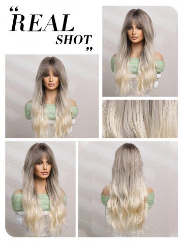 Gray Gradient White Long Wavy See-through Bangs Synthetic Wig - Multi-a - 24inch