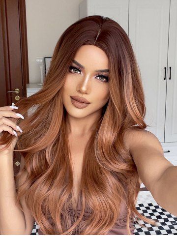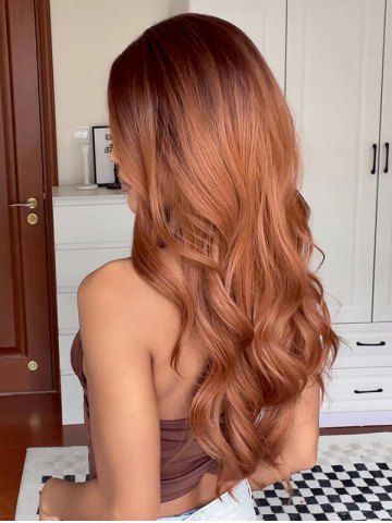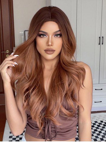 Long Wavy Middle Part Heat Resistant Fiber Wig - Tiger Orange
