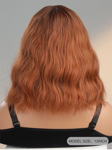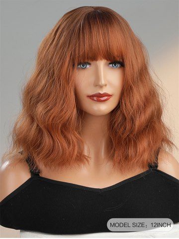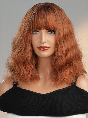 Synthetic Wigs > Mid-length Red-brown Full Bang Wavy Synthetic Wig