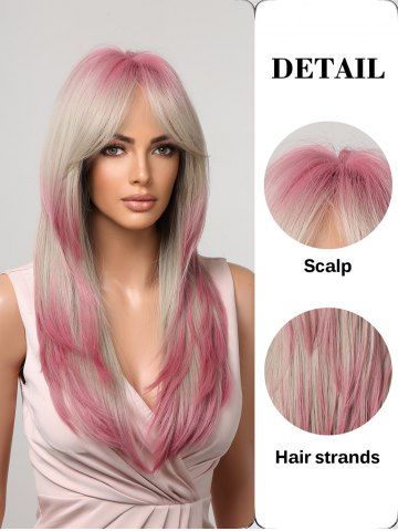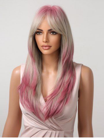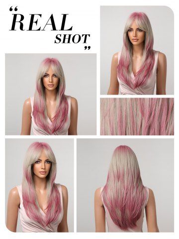 Platinum Pink Mixed Color Layered Middle Part Bangs Natural Straight Synthetic Wig - Multi-a - 20inch