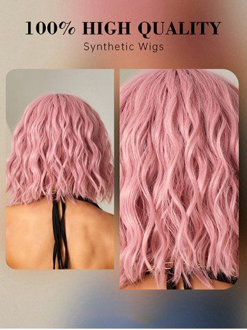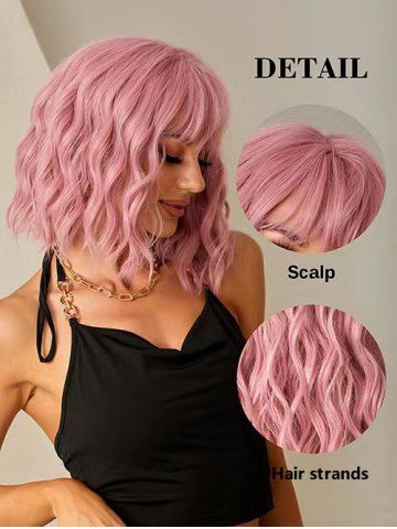 See-through Bang Fluffy Curly Short Synthetic Wig - Light Pink - 12inch