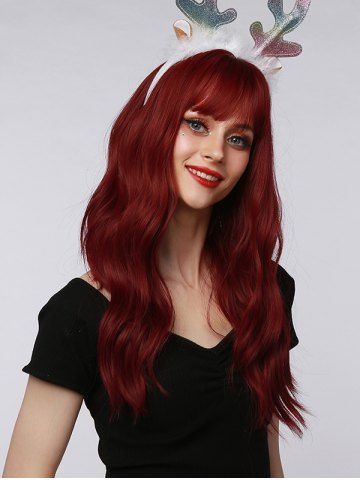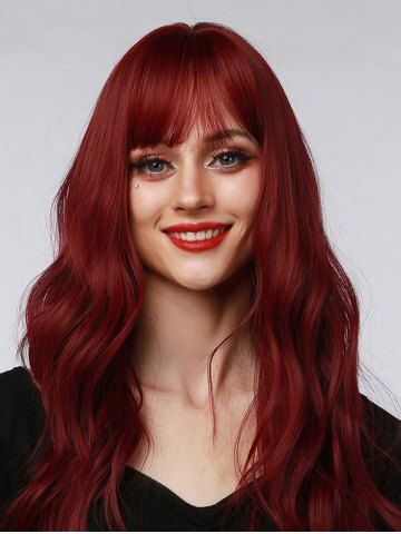 See-through Bang Long Wavy Halloween Party Synthetic Wig (Without Accessory) - Red Wine - 22inch