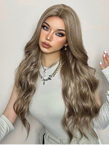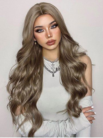 Stylish Long Fluffy Wavy Synthetic Wig - Dark Khaki - 26inch