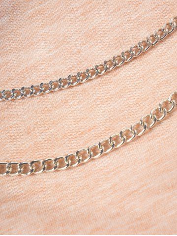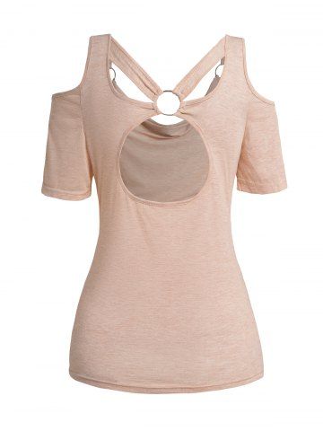 Cowl Neck Draped Cold Shoulder Ruched Chain Embellishment Cut Out Heather T Shirt - Light Coffee - S