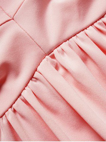 Crossover Bowknot Belt V Neck Short Sleeve Top - Light Pink - M
