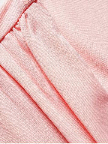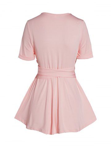 Crossover Bowknot Belt V Neck Short Sleeve Top - Light Pink - Xl