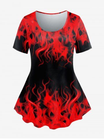 Gothic 3D Flame Print Short Sleeve T-Shirt - Red - 2x | Us 18-20