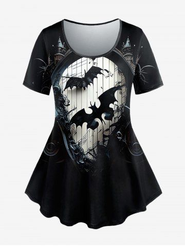 Gothic Bat Castle Print Short Sleeves T-shirt - Black - M