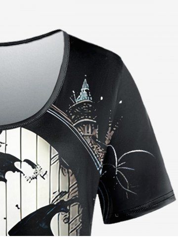 Gothic Bat Castle Print Short Sleeves T-shirt - Black - L