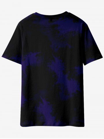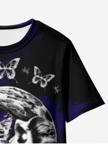 Gothic Butterfly Skull Moon Print Tie Dye T-shirt - Black - 2xl