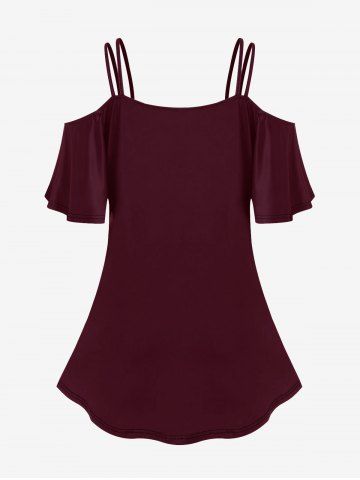 Gothic Clown Popcorn Print Cold Shoulder Cami T-shirt - Red - 1x