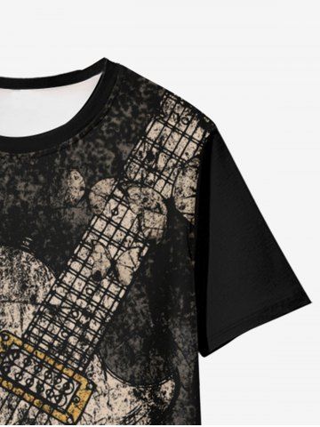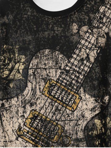 Gothic Distressed Guitar Print T-shirt - Black - 6xl