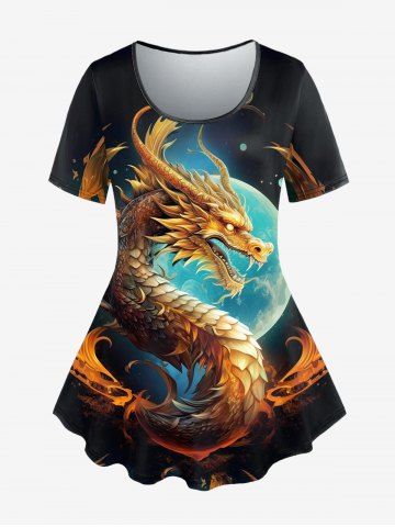 T-shirts > Gothic Dragon Moon Print T-shirt