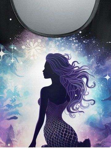 Gothic Mermaid Sparkling Print Short Sleeves T-shirt - Black - 5x