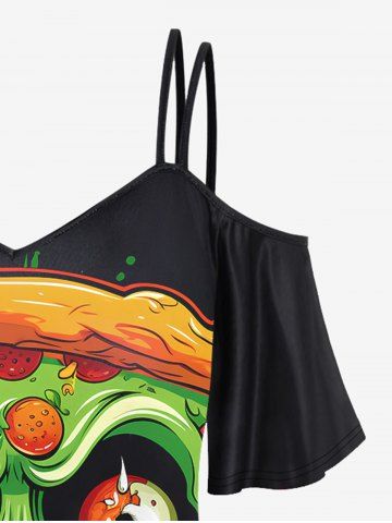 Gothic Monster Face Print Cold Shoulder Cami T-shirt - Black - 4x