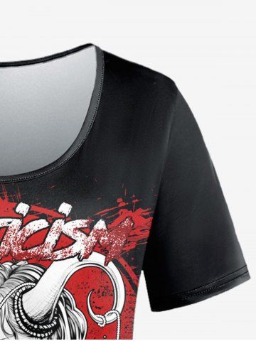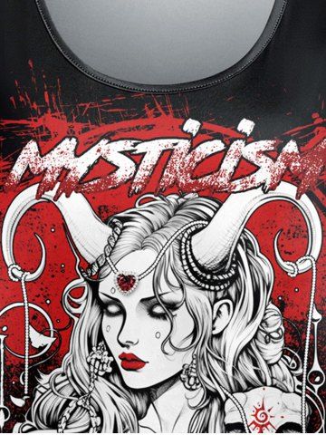 Gothic Mysterious Girl Skull Heart Pendant Print T-shirt - Black - 5x