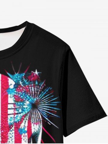 Gothic Patriotic American Flag Skull Print T-shirt - Black - 5xl