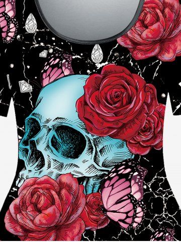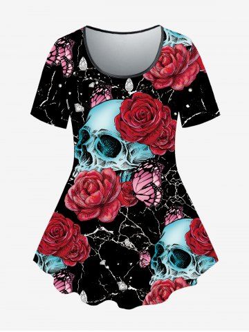 Gothic Short Sleeve Rose Skull Print Tee - Black - 2x | Us 18-20