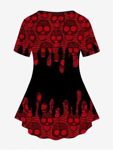 m*****55Gothic Short Sleeve Skull Lace Print T-shirtColor: BLACK Size: 1X | US 14-16This skeleton blood dripping Gothic tee fits true to size 1x. The material is silky soft with a nice stretch if needed. I have received many compliments from staff at work. Thanks Rosegal.💓💓💓💓💓
