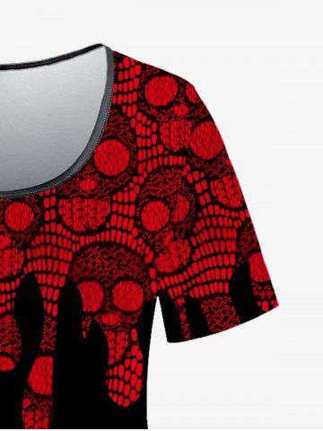 m*****55Gothic Short Sleeve Skull Lace Print T-shirtColor: BLACK Size: 1X | US 14-16This skeleton blood dripping Gothic tee fits true to size 1x. The material is silky soft with a nice stretch if needed. I have received many compliments from staff at work. Thanks Rosegal.💓💓💓💓💓