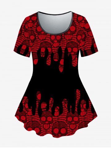 m*****55Gothic Short Sleeve Skull Lace Print T-shirtColor: BLACK Size: 1X | US 14-16This skeleton blood dripping Gothic tee fits true to size 1x. The material is silky soft with a nice stretch if needed. I have received many compliments from staff at work. Thanks Rosegal.💓💓💓💓💓