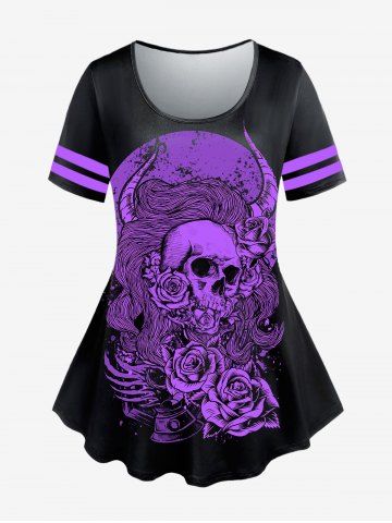 Gothic Short Sleeve Skull Rose Print T-shirt - Black - 1x | Us 14-16