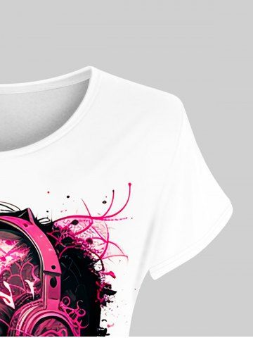 Gothic Skul Headphones Print T-shirt - White - 4xl
