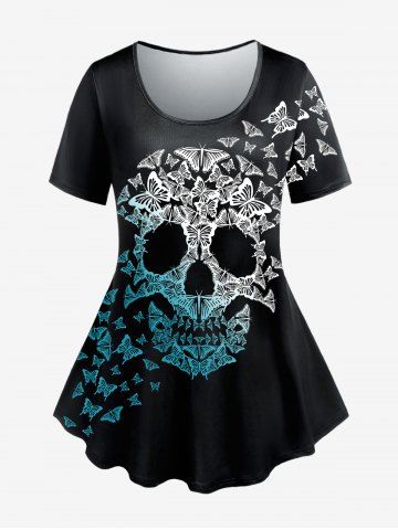 Gothic Skull Butterfly Print Tee - Black - 2x | Us 18-20