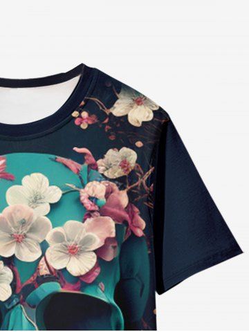 Gothic Skull Flower Print Short Sleeve T-shirt - Black - 6xl