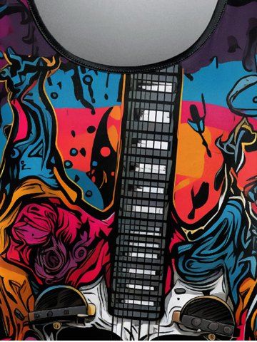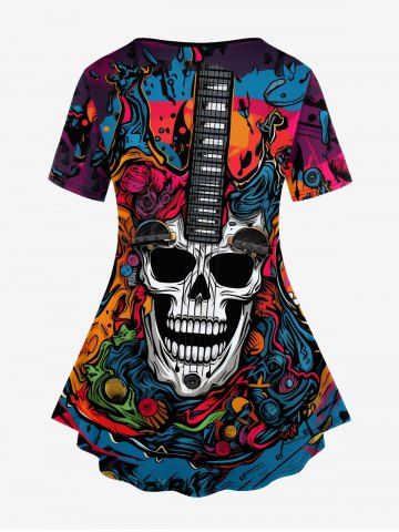 T-shirts > Gothic Skull Guitar Colorful Colorblock Print Halloween Short Sleeves T-shirt