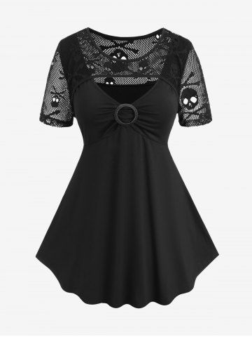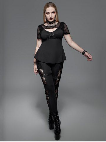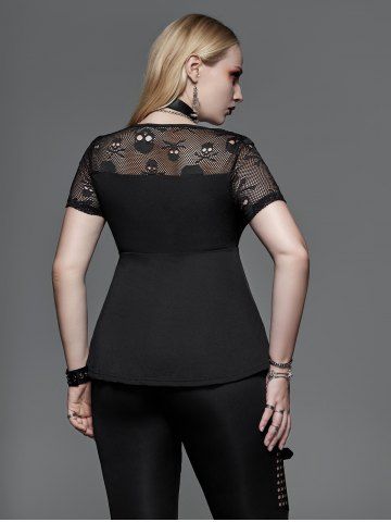 q*****34Gothic Skull Mesh Panel O-ring Cutout T-shirtColor: BLACK Size: 2X | US 18-20Perfect fit ,looks amazing, sexy and classy. Love mixing and matching with other outfits.