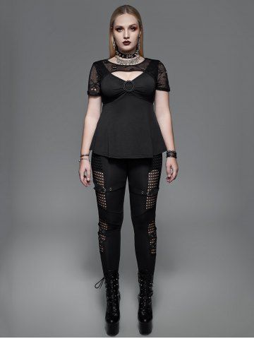 q*****34Gothic Skull Mesh Panel O-ring Cutout T-shirtColor: BLACK Size: 2X | US 18-20Perfect fit ,looks amazing, sexy and classy. Love mixing and matching with other outfits.