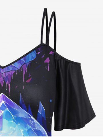 Gothic Skull Mountain Glitter Print Cold Shoulder Cami T-shirt - Black - 4x