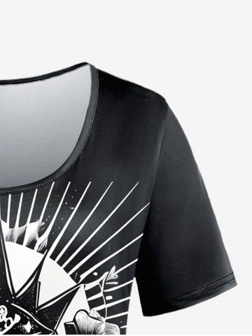 Gothic Skull Rose Crown Print T-shirt - Black - 2x | Us 18-20