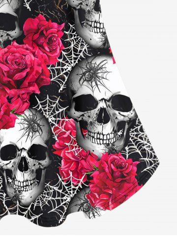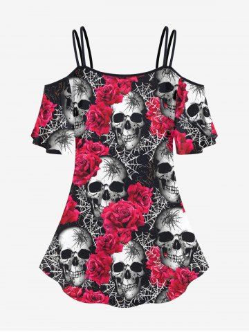 Gothic Skull Rose Spider Web Print Cold Shoulder T-shirt - Red - 5x | Us 30-32