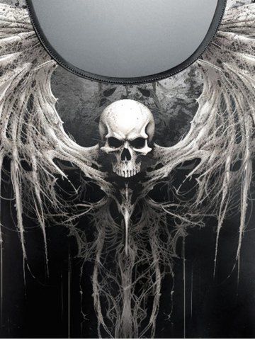 Gothic Skull Wings Tie Dye Print Ombre Halloween T-shirt - Black - S