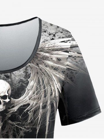 c*****15Gothic Skull Wings Tie Dye Print Ombre Halloween T-shirtColor: BLACK Size: 4XI love this material, I love the shirt, I love this design, it's very flattering on me and I greatly appreciate it.