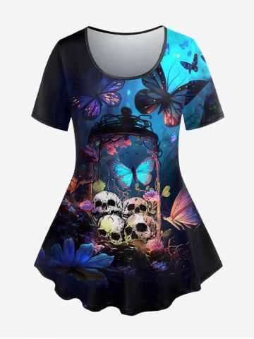 L*****e5Gothic Skulls Butterfly Plant Glitter Print Short Sleeves T-shirtColor: BLACK Size: LI happen to really love this shirt around Halloween time. the colors are amazing, and people seem to like it.