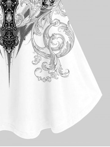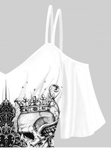 Gothic Skulls Cross Print Cold Shoulder T-shirt - White - 4x | Us 26-28